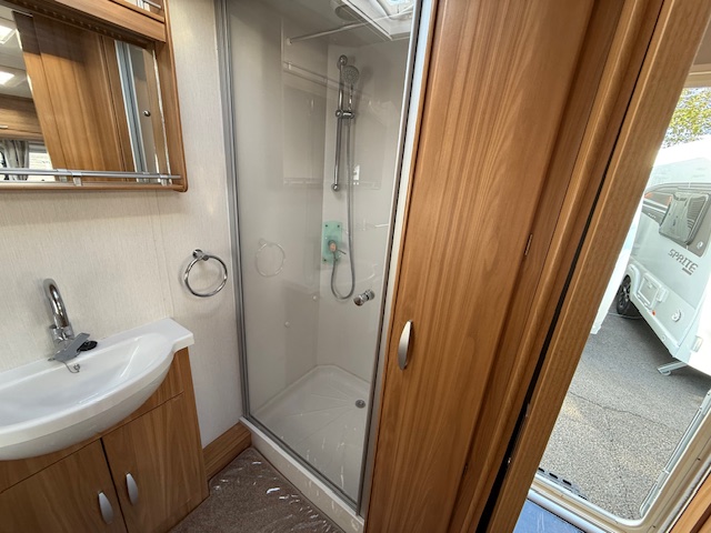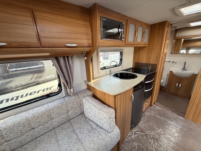 Other features include Alde wet central heating, radio with speakers, loose fit carpets with wipe clean flooring beneath, stable door with flyscreen and bin, flyscreens and blinds to all windows and rooflights, digital TV aerial.