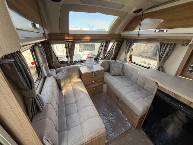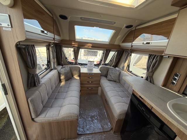 Other features include Alde wet central heating, radio with speakers, loose fit carpets with wipe clean flooring beneath, one-piece door with flyscreen and bin, flyscreens and blinds to all windows and rooflights, digital TV aerial.