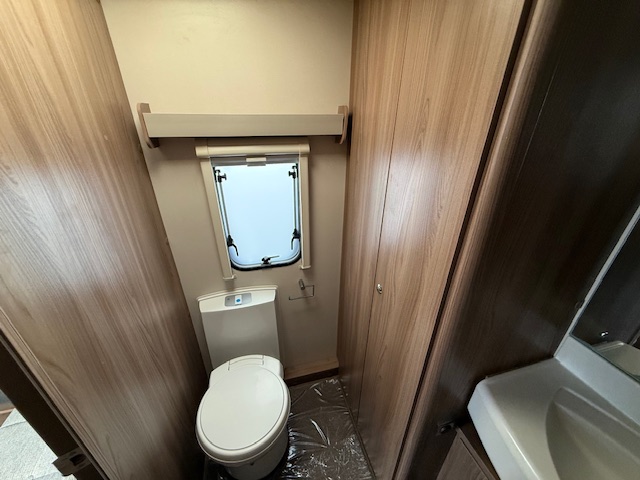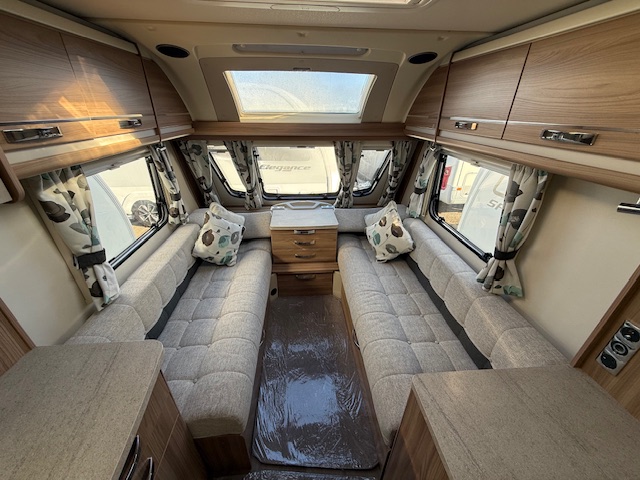 Other features include Truma Combi dual fuel heating, radio with speakers, loose fit carpets with wipe clean flooring beneath, one-piece door with flyscreen and bin, flyscreens and blinds to all windows and rooflights, digital TV aerial.