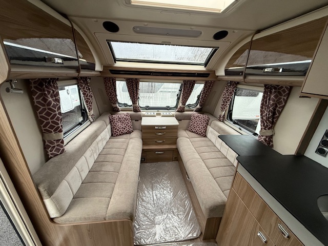 Other features include Alde wet central heating, radio with speakers, loose fit carpets with wipe clean flooring beneath, one-piece door with flyscreen and bin, flyscreens and blinds to all windows and rooflights, digital TV aerial.