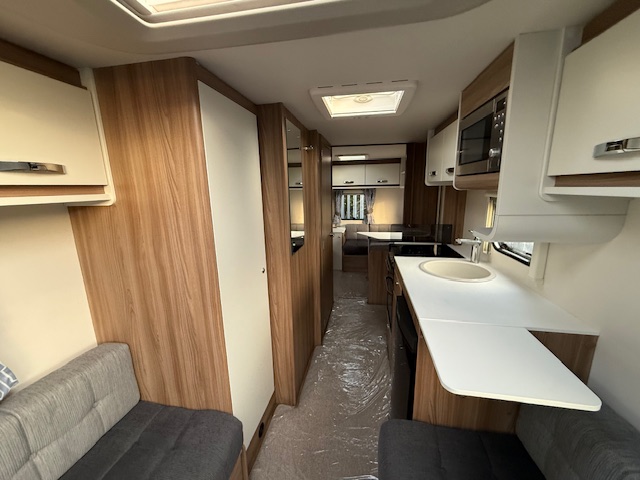 All Swift models include the SMART construction system with polyurethane timberless framing that’s impervious to water, tough durable glass reinforced plastic outer shell, which includes a hail resistant roof, GRP front and rear panels. The range benefits from an AL-KO chassis, AKS stabiliser, receiver for AL-KO secure wheel lock, full width gas locker to ensure easy access and manoeuvrability of two gas bottles, panoramic sunroof. Internally our Accords come with dual fuel heating with Truma Combi 4 boiler, 100l Dometic electronic ignition fridge, Microwave, 100% LED Lighting, Thetford 3 burner hob and lid with safety cut-out feature, oven and separate grill.