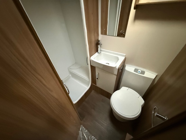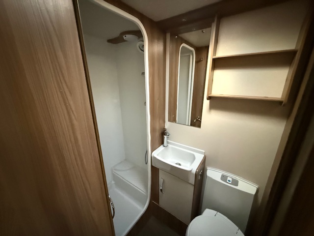 This 6 berth touring caravan has a seating area to the front which also converts into a double bed. With centre chest of drawers, overhead lockers and under seat storage. Behind the sitting area is the kitchen which is well equipped with Dometic 3 way fridge with freezer compartment, Thetford gas oven with grill fitted with a 3 burner hob, microwave. With a wardrobe and washroom opposite which is equipped with Thetford swivel electric flush toilet, vanity storage lockers, separate shower with Ecocamel water saving shower head. To the rear of the caravan is the fixed bunk beds with dinette area which also converts into bunk beds and over head lockers for extra storage.