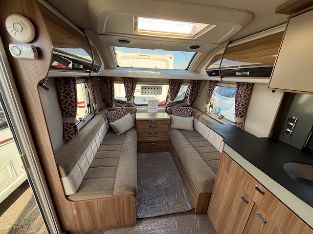 Other features include Alde wet central heating, radio with speakers, loose fit carpets with wipe clean flooring beneath, one-piece door with flyscreen and bin, flyscreens and blinds to all windows and rooflights, digital TV aerial.