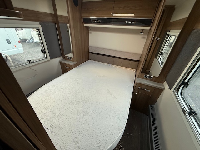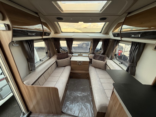 Other features include Alde wet central heating, radio with speakers, loose fit carpets with wipe clean flooring beneath, one-piece door with flyscreen and bin, flyscreens and blinds to all windows and rooflights, digital TV aerial.