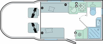 To the front of the motorhome is a dinette area with electric adjustable table which is used as the base of the bottom double bed. There is also an electric double bed that retracts from the ceiling. Behind the lounge is the kitchen which has a Thetford oven & grill with gas hob, tall fridge/ freezer and worktop extension. To the rear of the motorhome is the washroom which is equiped with Thetford electric flush swivel toilet, seperate shower, rear wardrobe and access to garage.