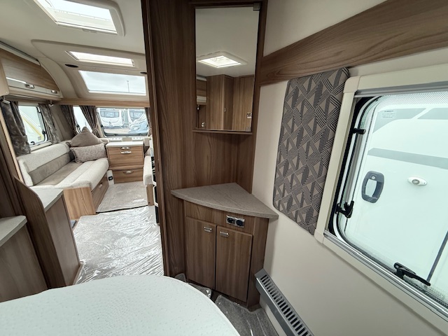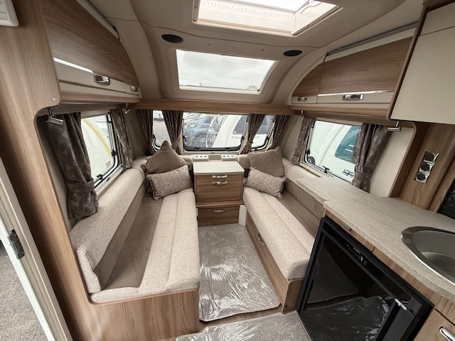 Other features include Alde wet central heating, radio with speakers, loose fit carpets with wipe clean flooring beneath, one-piece door with flyscreen and bin, flyscreens and blinds to all windows and rooflights, digital TV aerial.