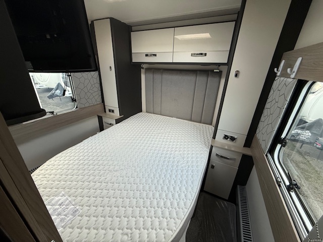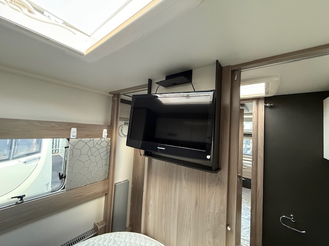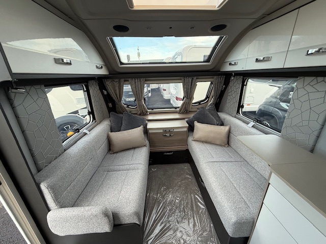 Other features include Alde wet central heating, radio with speakers, loose fit carpets with wipe clean flooring beneath, one-piece door with flyscreen and bin, flyscreens and blinds to all windows and rooflights, digital TV aerial.