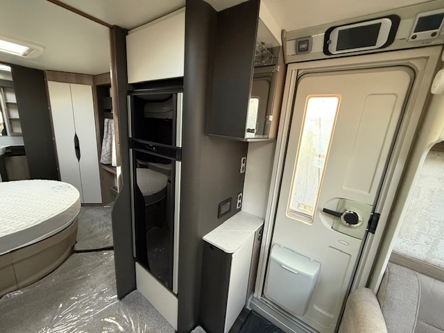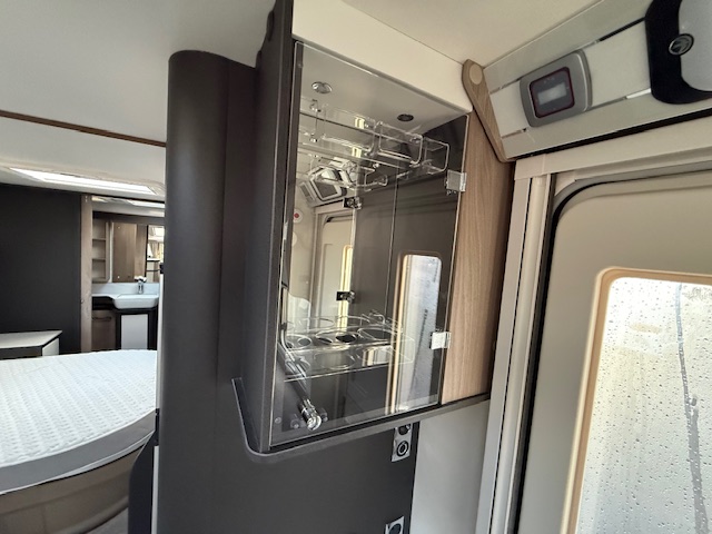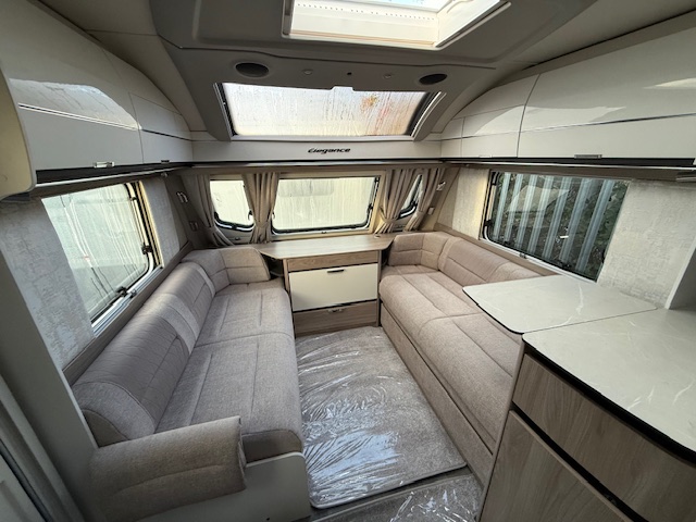 Other features include Alde wet central heating with underfloor heating, radio with speakers, loose fit carpets with wipe clean flooring beneath, one-piece door with flyscreen and bin, flyscreens and blinds to all windows and rooflights, digital TV aerial.