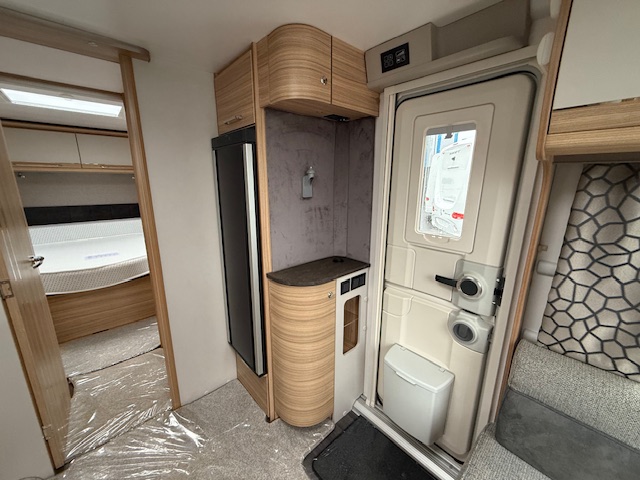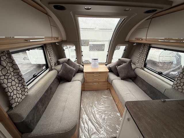Other features include Alde wet central heating, radio with speakers, loose fit carpets with wipe clean flooring beneath, one-piece door with flyscreen and bin, flyscreens and blinds to all windows and rooflights, digital TV aerial.