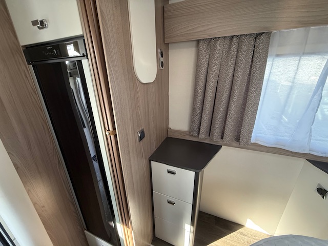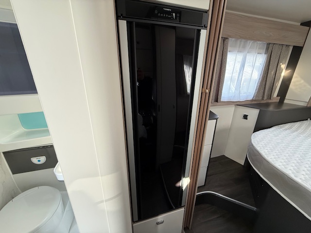 – Dometic (series 10) 133 litre, tall slimline, automatic energy selection fridge with 230v, gas and 12v operation incorporating 12 litre removable freezer compartment