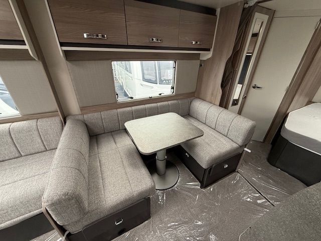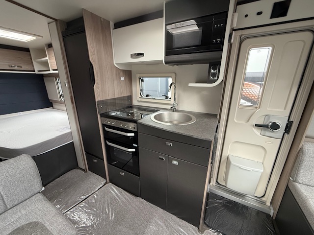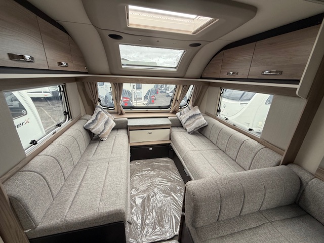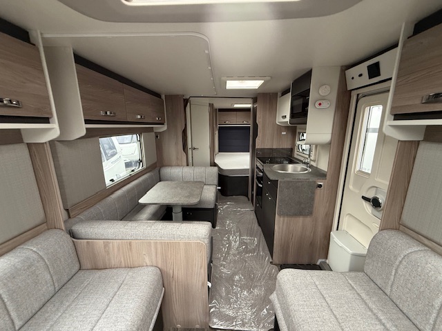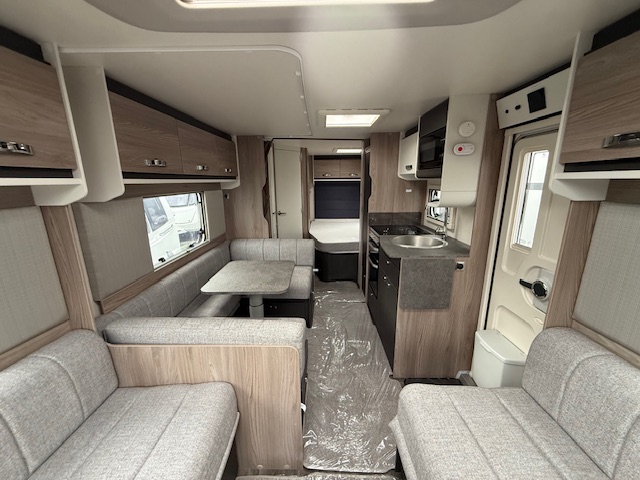 All Swift models include the SMART construction system with polyurethane timberless framing that’s impervious to water, tough durable glass reinforced plastic outer shell, which includes a hail resistant roof, GRP front and rear panels. The range benefits from an AL-KO chassis, AKS stabiliser, receiver for AL-KO secure wheel lock, full width gas locker to ensure easy access and manoeuvrability of two gas bottles, panoramic sunroof. Internally our Accords come with dual fuel heating with Truma Combi 4 boiler, 100l Dometic electronic ignition fridge, Microwave, 100% LED Lighting, Thetford 3 burner hob and lid with safety cut-out feature, oven and separate grill.