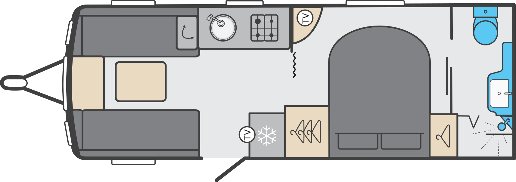- TV point with 230V, 12V and aerial sockets (two on twin axles)