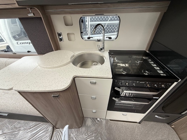 Returning by popular demand, Conqueror is a well-loved favourite among experienced caravanners. Thoughtfully designed with comfort in mind, it offers a refined space that feels just like home – from wider double beds complete with luxurious Duvalay mattresses to the warmth of Alde heating. With a generous kitchen space, clever storage and soft, atmospheric lighting throughout, Conqueror blends practicality with sophistication, creating the perfect setting for relaxing getaways.