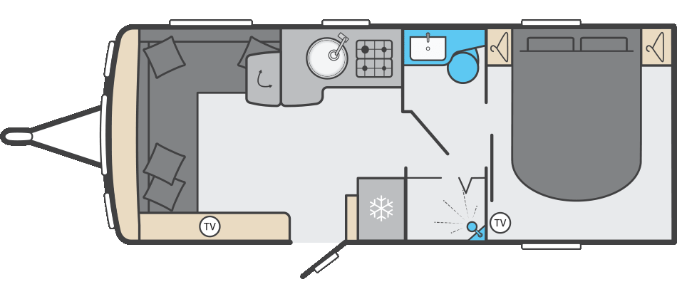 Returning by popular demand, Conqueror is a well-loved favourite among experienced caravanners. Thoughtfully designed with comfort in mind, it offers a refined space that feels just like home – from wider double beds complete with luxurious Duvalay mattresses to the warmth of Alde heating. With a generous kitchen space, clever storage and soft, atmospheric lighting throughout, Conqueror blends practicality with sophistication, creating the perfect setting for relaxing getaways.