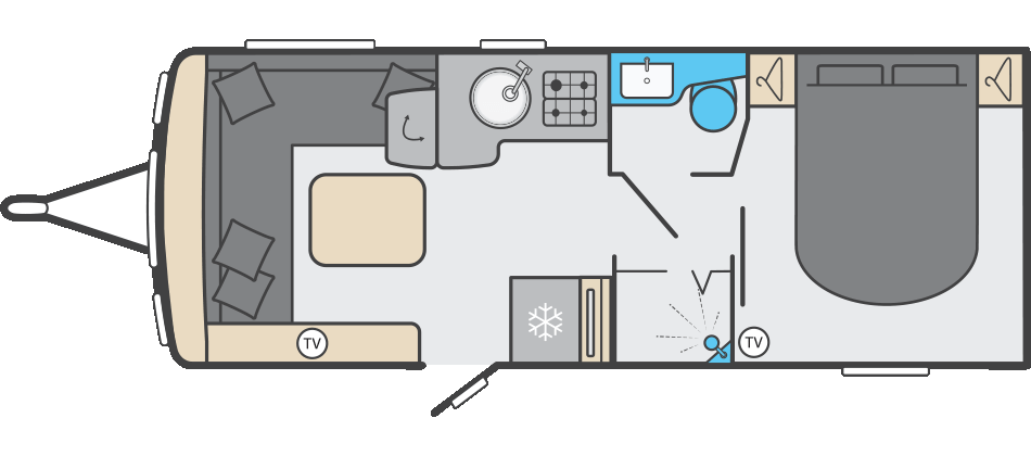 Returning by popular demand, Conqueror is a well-loved favourite among experienced caravanners. Thoughtfully designed with comfort in mind, it offers a refined space that feels just like home – from wider double beds complete with luxurious Duvalay mattresses to the warmth of Alde heating. With a generous kitchen space, clever storage and soft, atmospheric lighting throughout, Conqueror blends practicality with sophistication, creating the perfect setting for relaxing getaways.