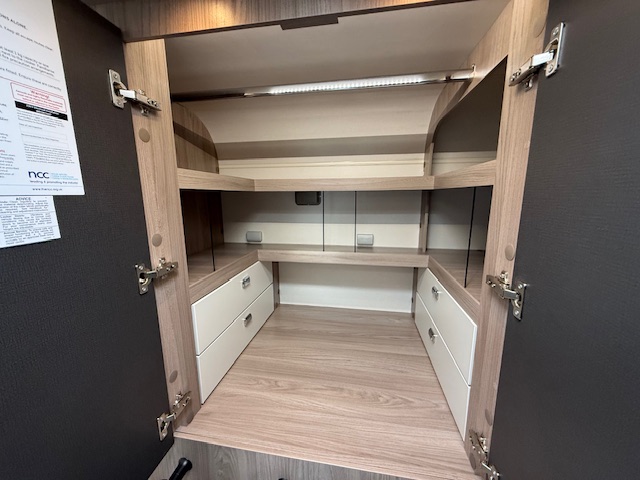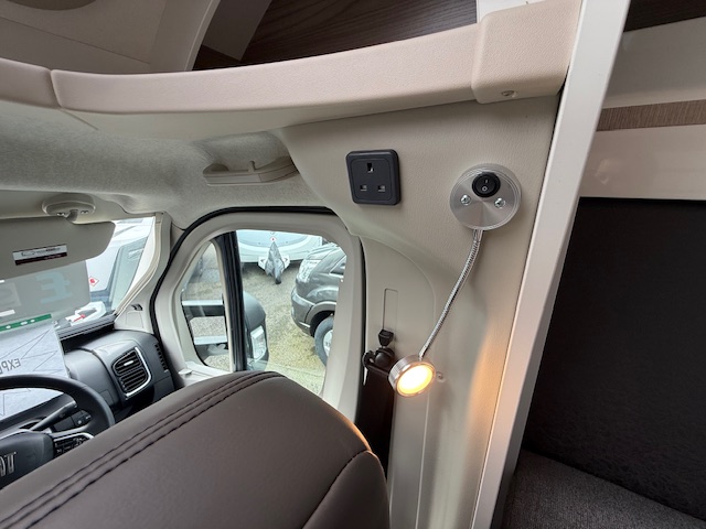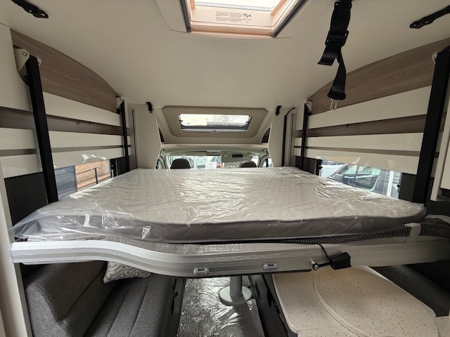 - Wide, height adjustable electric drop down bed over front lounge (640 & 674)
