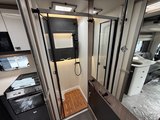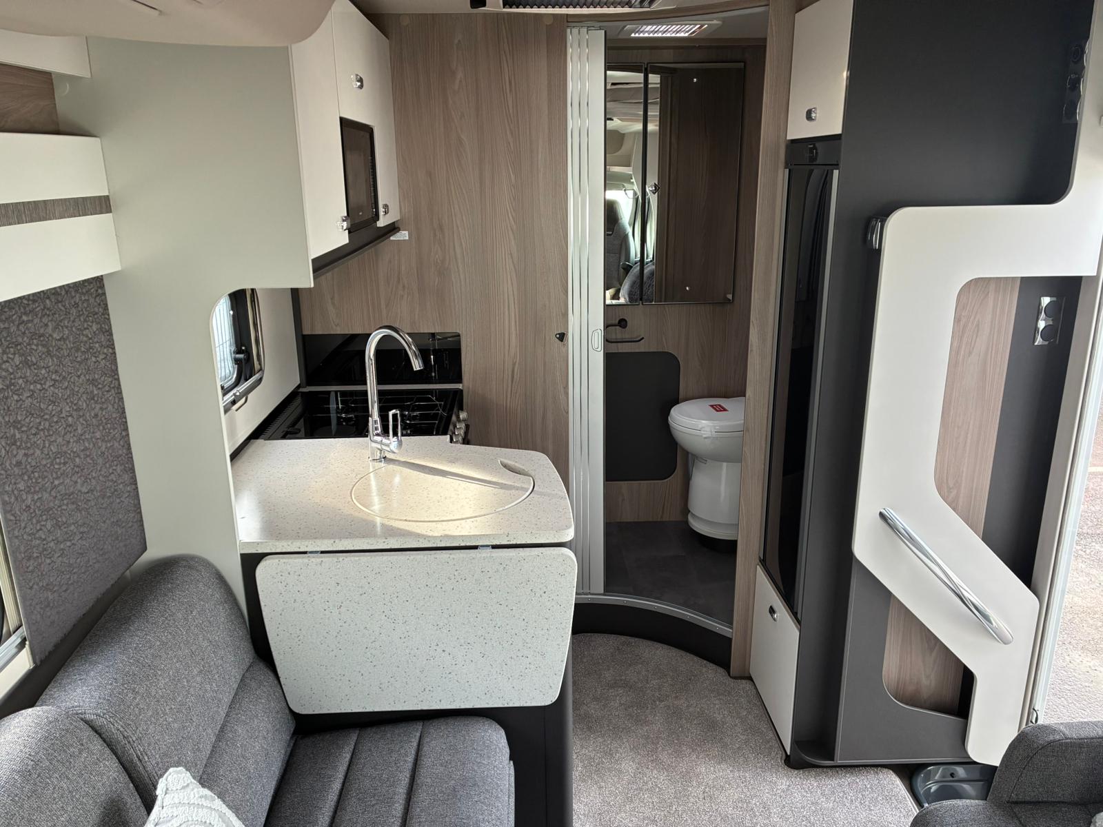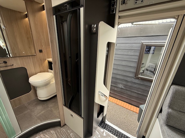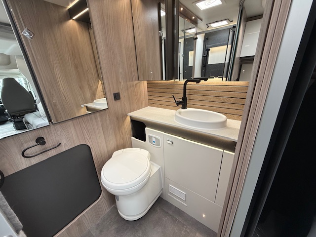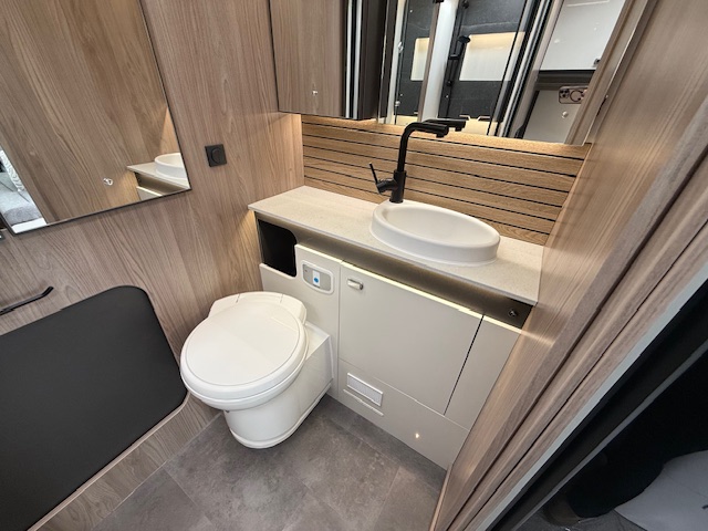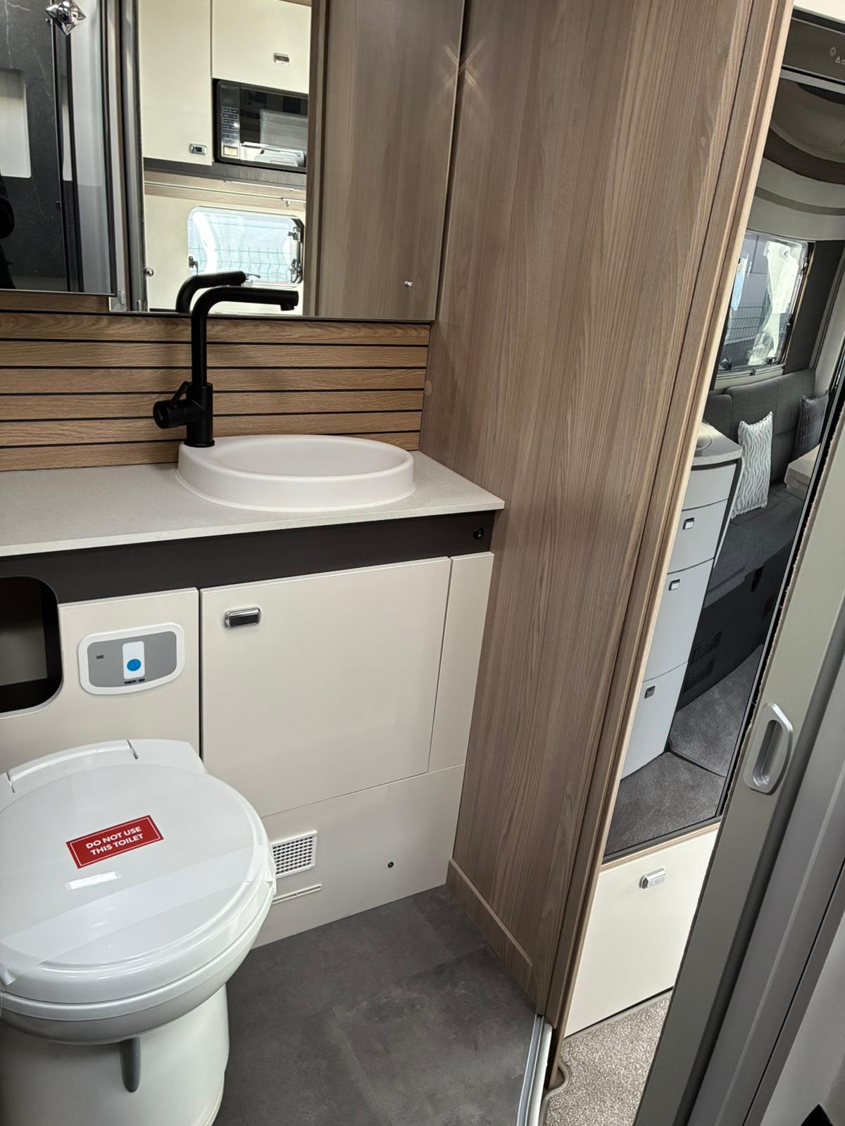 - Thetford cassette toilet with electric flush and 18 litre wheeled tank