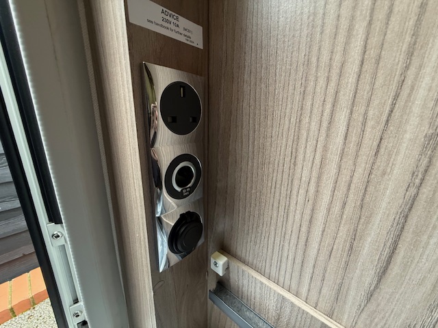 - Mains 230V supply, via easy-access consumer unit, to sockets, fridge, heater, water heater and battery charger/transformer