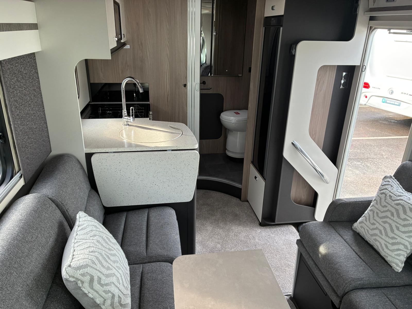 - Front parallel lounge with fold-down Aguti travelling seats incorporating ISOfix (2 x Aguti seats on offside on 674)