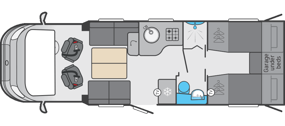 - Front parallel lounge with fold-down Aguti travelling seats incorporating ISOfix (2 x Aguti seats on offside on 674)