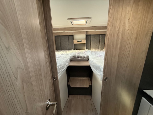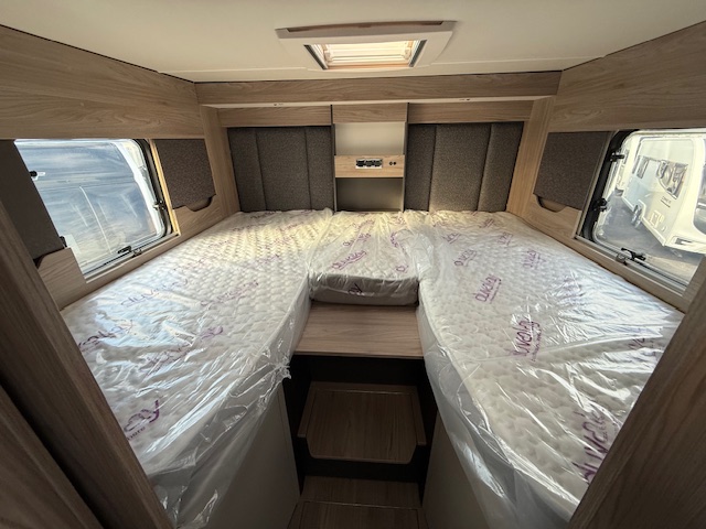 - Wide, height adjustable electric drop down bed over front lounge (640 & 674)