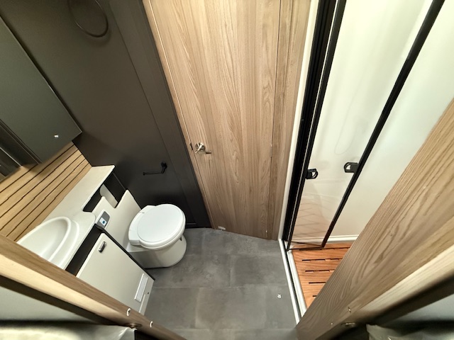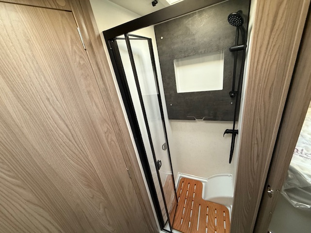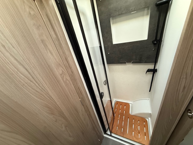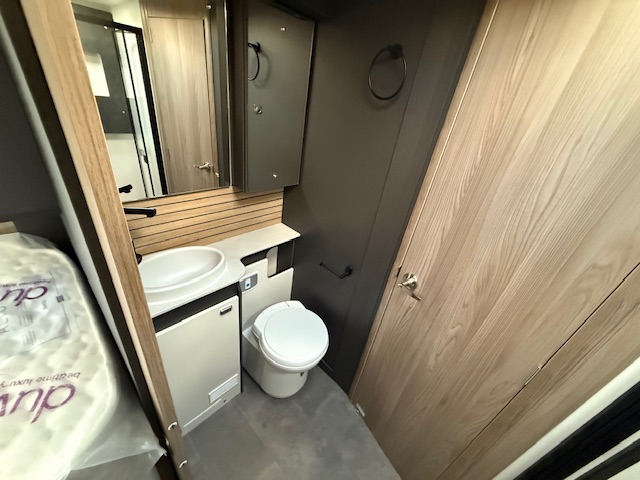 - Thetford cassette toilet with electric flush and 18 litre wheeled tank