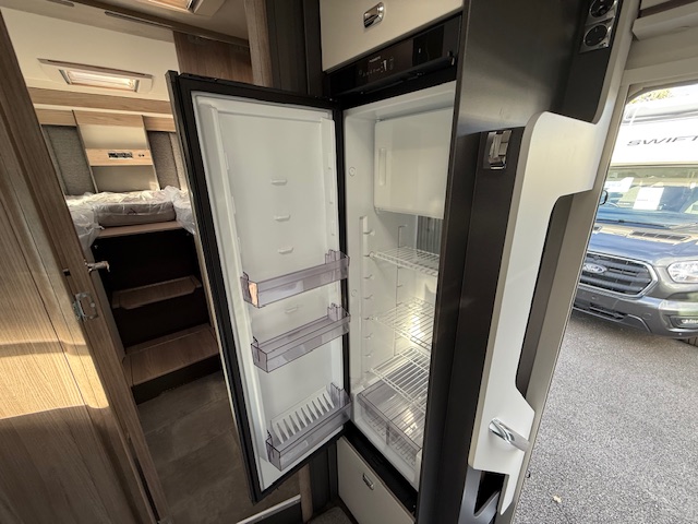 - Dometic (Series 10) 133 litre, tall slimline, dual hinged, automatic energy selection fridge with 230V, gas and 12V operation incorporating 12 litre removable freezer compartment
