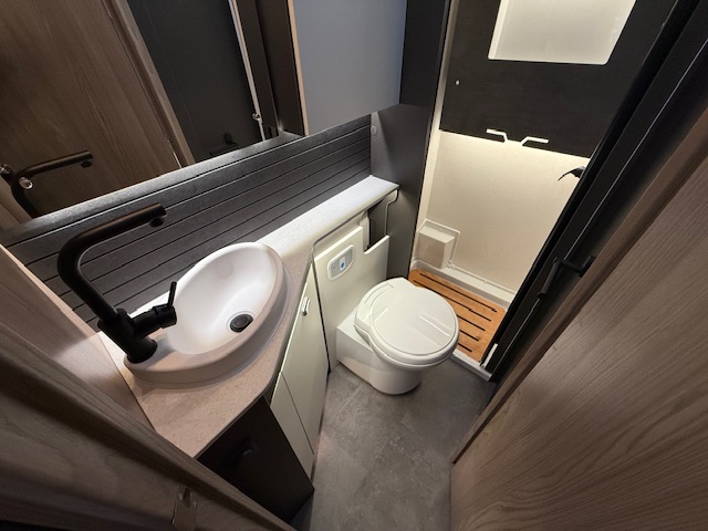 – Thetford Triplex combination oven and grill, plus a three-burner gas hob with electric hotplate, all with electronic ignition. Hob features a glass lid with automatic gas shut-off functionality