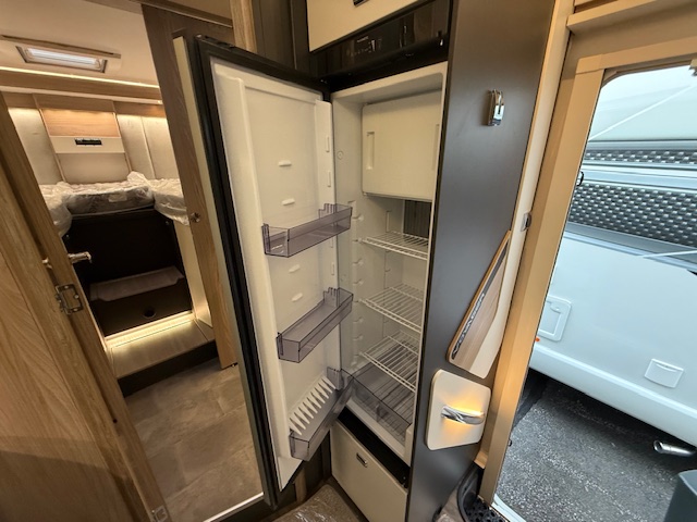 – Dometic (series 10) 133 litre, tall slimline, automatic energy selection fridge with 230v, gas and 12v operation incorporating 12 litre removable freezer compartment